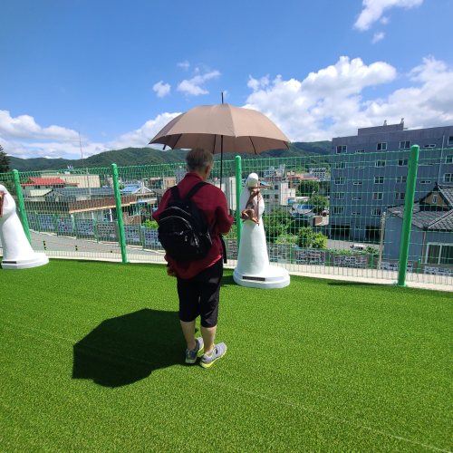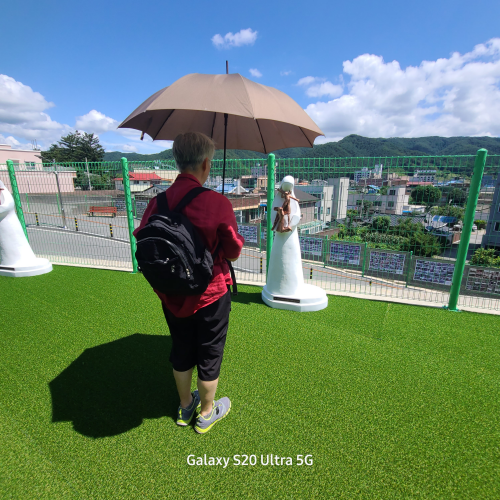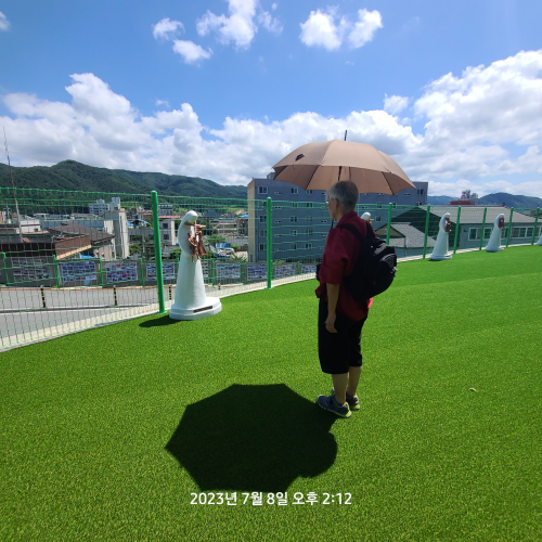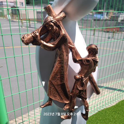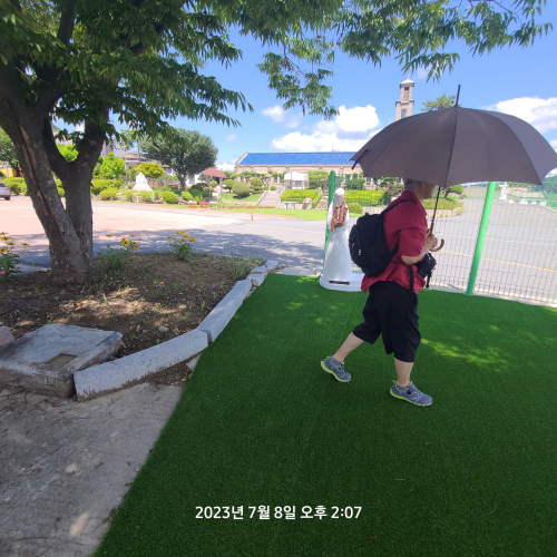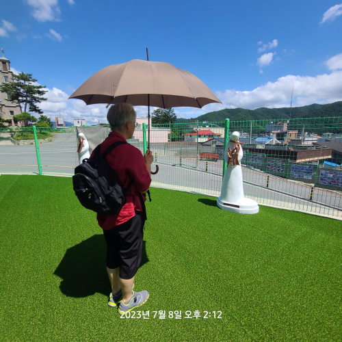 밤에는 못 보았던 십자가의 길을 따라 또 지글거리는 태양속을 양산으로 가려가며