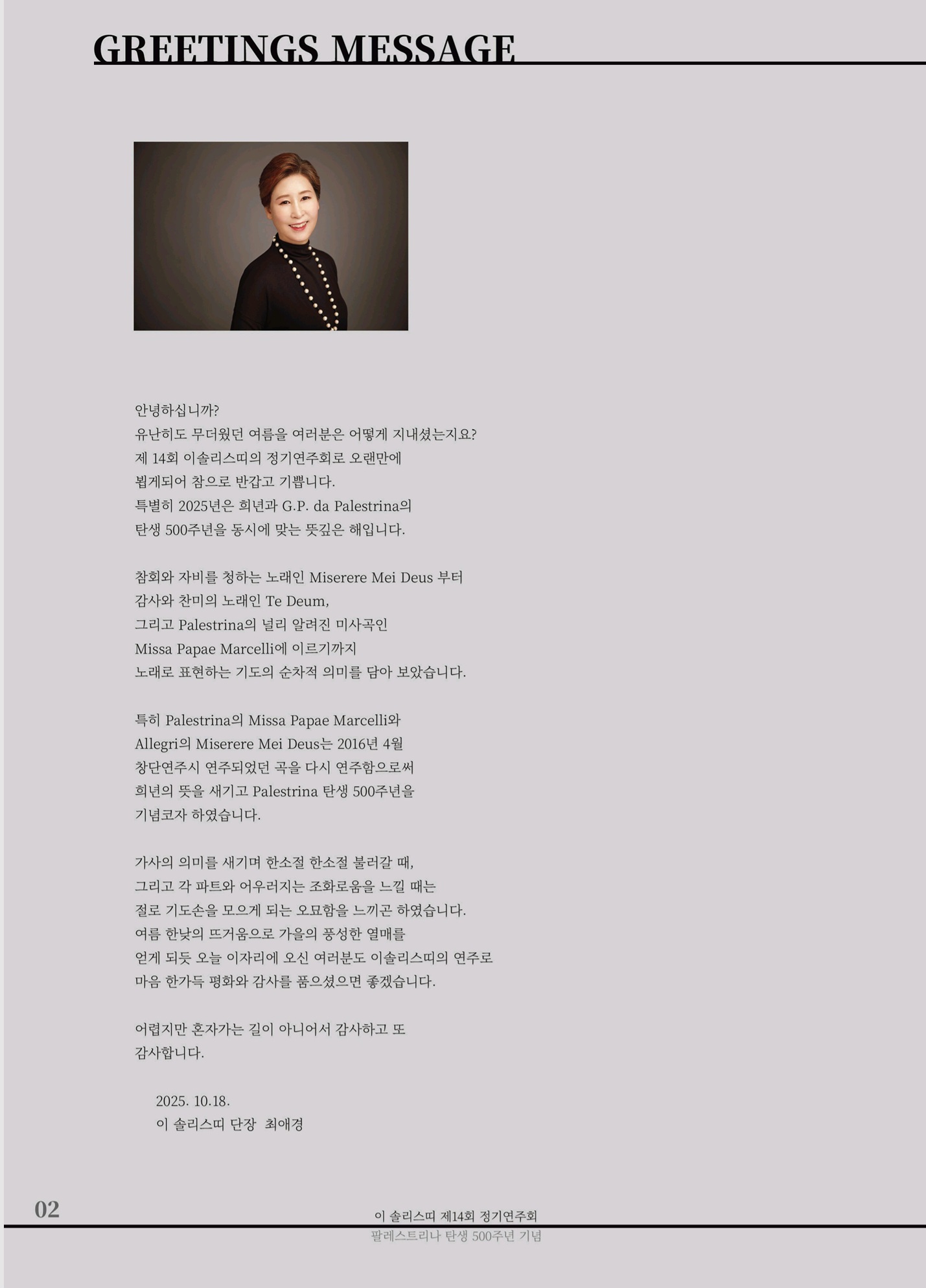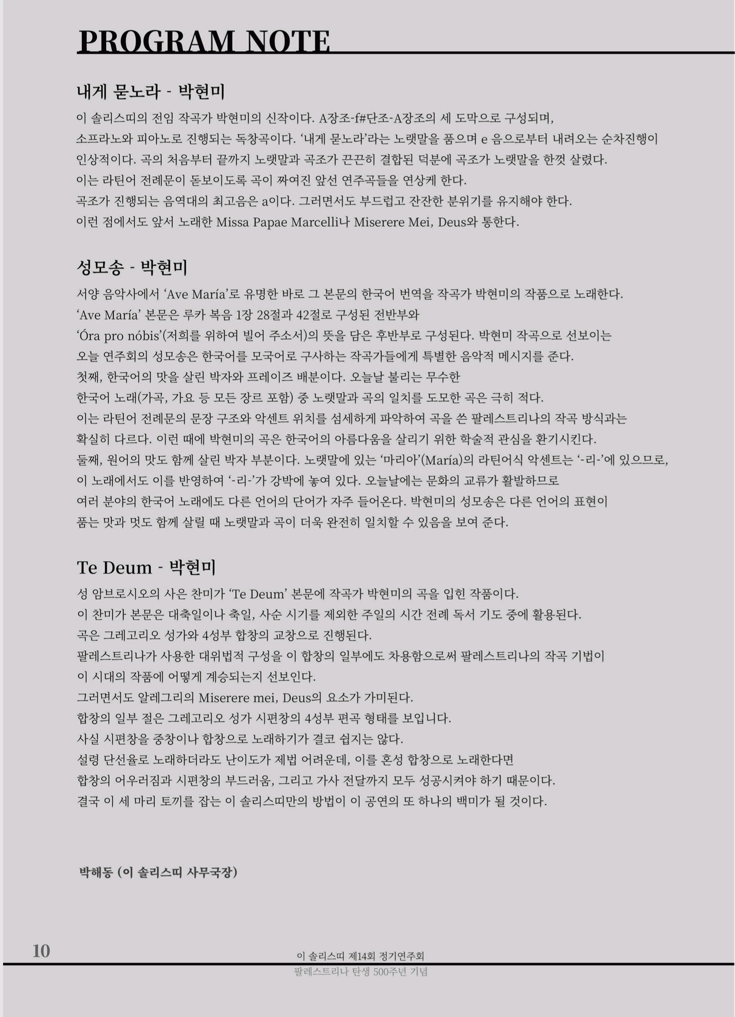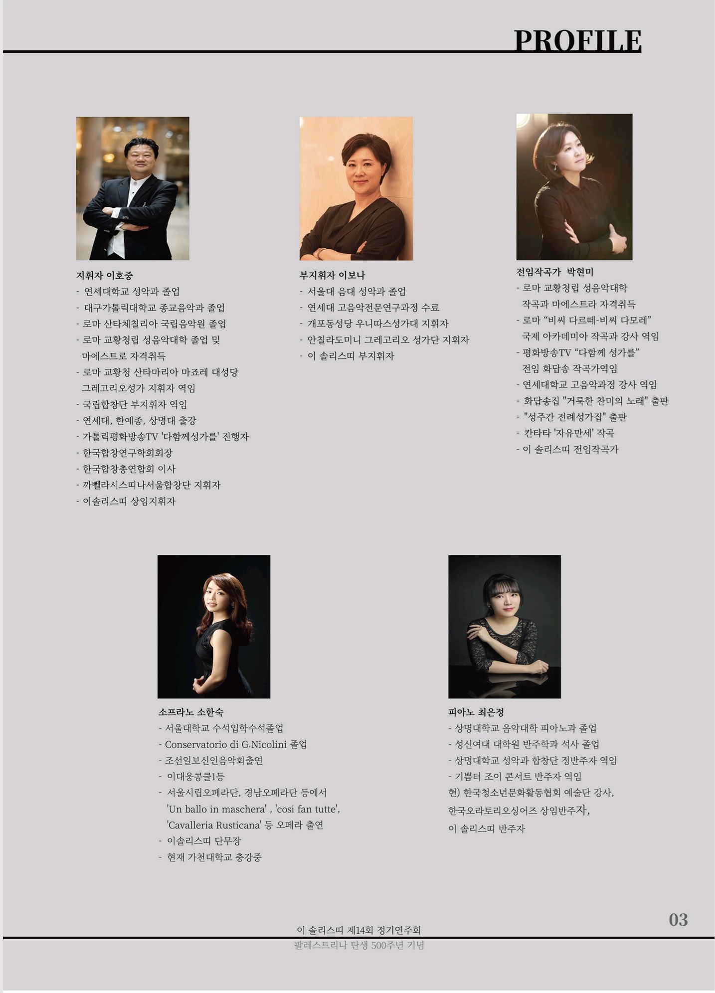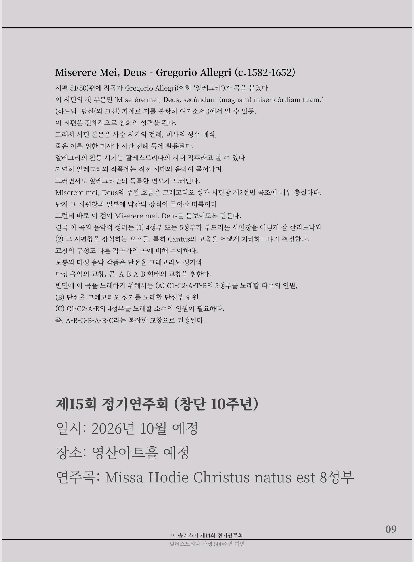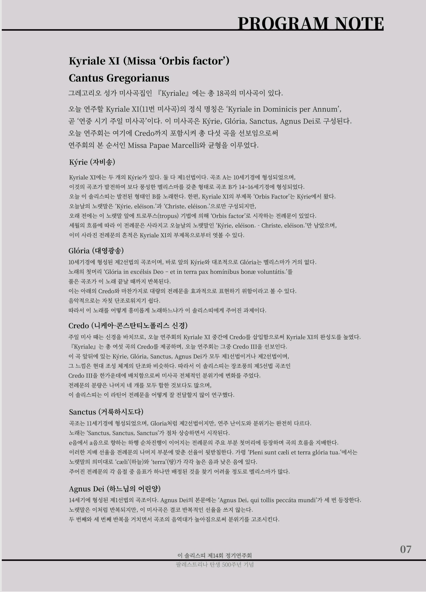 이 솔리스띠 제14회 정기연주회 "Missa Papae Marcelli" 프로그램 |