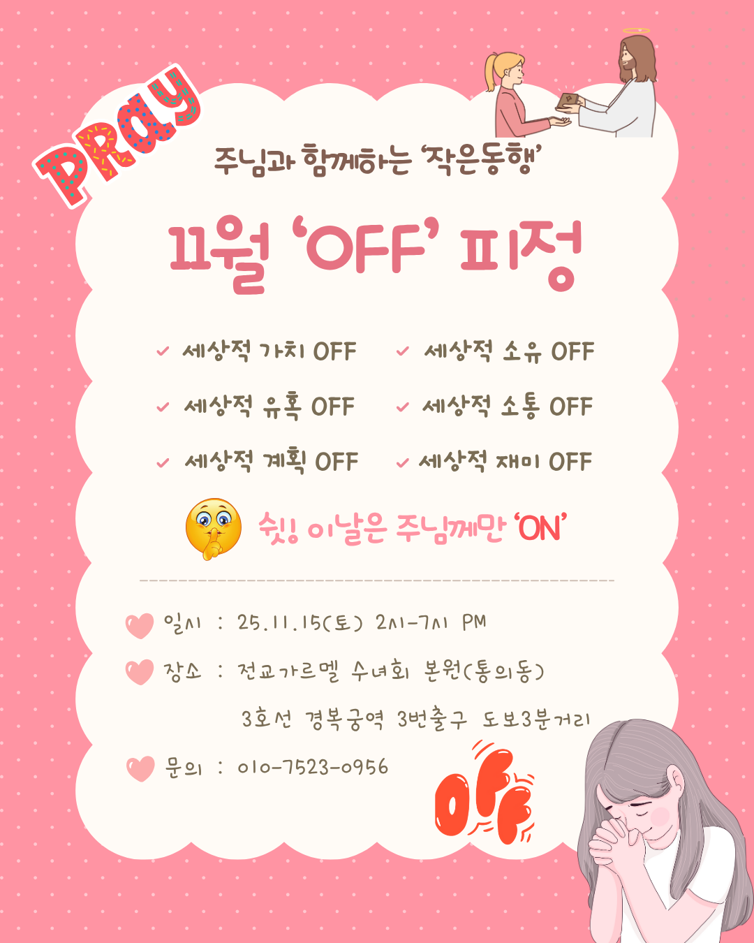 【서울지역】11월 'OFF' 청년피정 11월 15일 초대합니다!!!