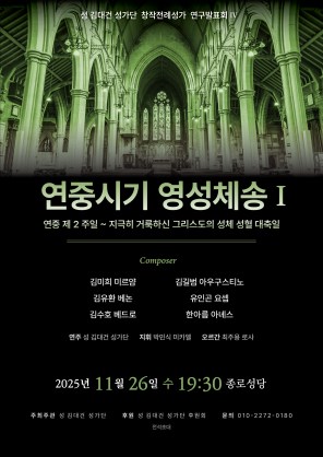 2025년 11월 26일 (수) 19:30 종로성당에서 ‘성가대가 부르는 연중시기 영성체송 Ⅰ’을 초연합니다.