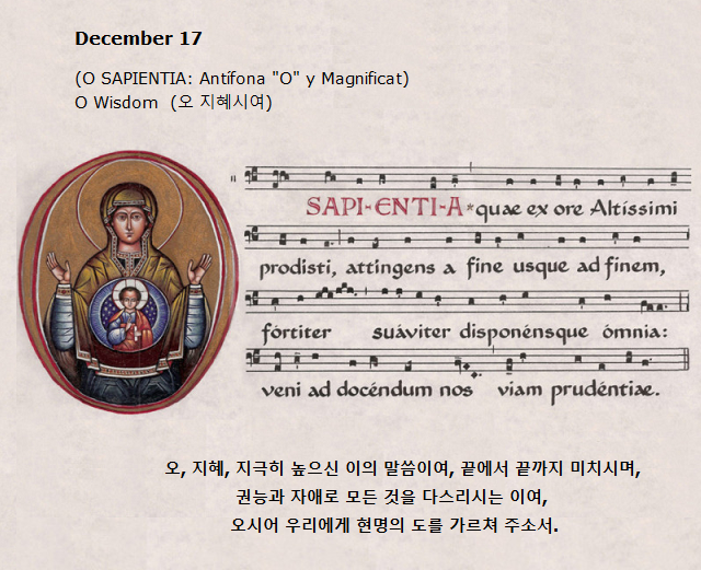 이 마니피캇 안티폰은 수도자들만의 기도처럼 보이지만 누구나 바칠 수 있는 교회의 기도입니다. 대림 시기에는 평신도도 조용히 개인 묵상으로 한 구절씩 읽으며 메시아를 기다리는 마음을 함께할 수 있습니다. 아름다운 기다림의 묵상, 기도입니다.