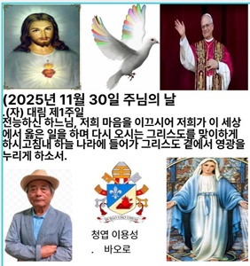 2025년 11월 30일 주님의 날 (자) 대림 제1주일 오늘은 대림 제1주일입니다. 전례력으로 새로운 한 해를 시작하는 오늘, 교회는 마지막 때에 대하여 묵상하도록 우리를 초대합니다. 세상이 끝나면 그것으로 우리 모두가 멸망하는 것이 아니라, 다시 오시는 주님에게서 구원을 얻습니다. 대림 시기를 시작하며 다시 오실 예수님을 기다리는 마음으로 늘 깨어 있도록 합시다.