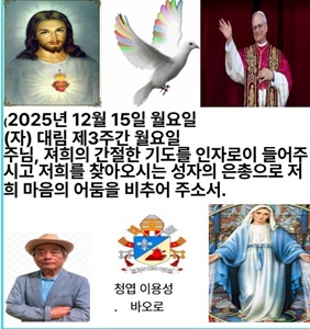 2025년 12월 15일 월요일 (자) 대림 제3주간 월요일 민족들아, 주님의 말씀을 듣고, 그 말씀 땅끝까지 전하여라. 보라, 우리 구세주 오시리니, 이제 두려워하지 마라.