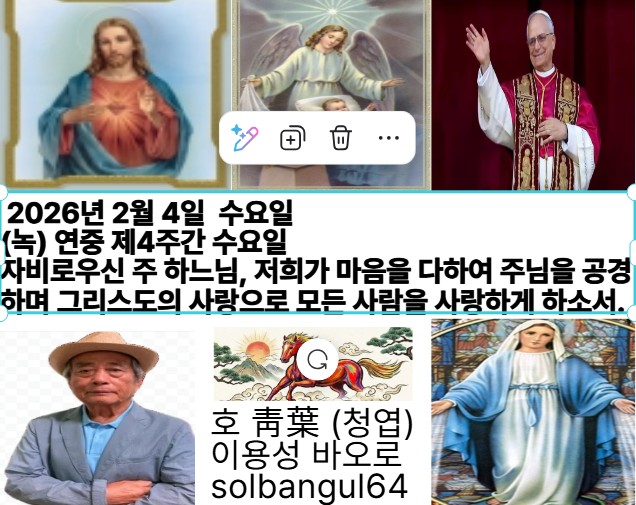 2026년 2월 4일 수요일 (녹) 연중 제4주간 수요일 주 하느님, 저희를 구하소서. 민족들에게서 저희를 모아들이소서. 당신의 거룩하신 이름을 찬송하고, 당신을 찬양하여 영광으로 삼으오리다.