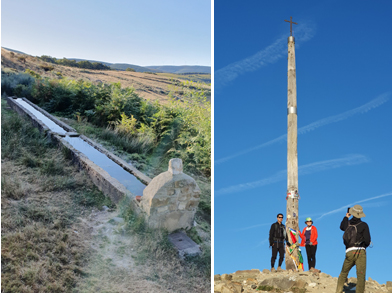 이튿날 새벽에 신부님 강복을 받고 최종 목적지 산티아고에 가서 수행할 미션까지 다짐하고 철의 십자가를 향해 길을 나섰다. 폰세바돈을 지나 걷다 보면 독일 코미디언 하페가 쓴 ‘산티아고 길에서 나를 만나다’ 원작 영화 ‘나의 산티아고’(2015년) 명장면에서 발을 담갔던 긴 물통이 나온다. 방목하는 소들에게 물을 먹이기 위해 만들어진 것이라고 한다. 순례길에서 유명한 철의 십자가(Cruise de Ferro)는 이라고산 해발 1,528m에 있다. 산티아고 순례(프랑스 길)에서 중요한 의미를 담고 있는 십자가이다. 철의 십자가는 산 정상에 세워져 있는 랜드마크이고 동서남북 어디에서나 쉽게 눈에 띄는 중요지형지물이다. 5미터 높이에 원 추형의 기반이 있고 그 윗부분에 둥근 나무 기둥이 세워져 있으며 그 위에 세워진 작은 십자가를 말한다. 과거에는 사제들이 제물을 바치는 제단이었다고 전한다. 오늘날 철의 십자가 밑에는 세계 각국에서 온 순례자들이 사연을 담은 기도 지향과 이름은 적은 돌들과 물건들이 놓여 있다.