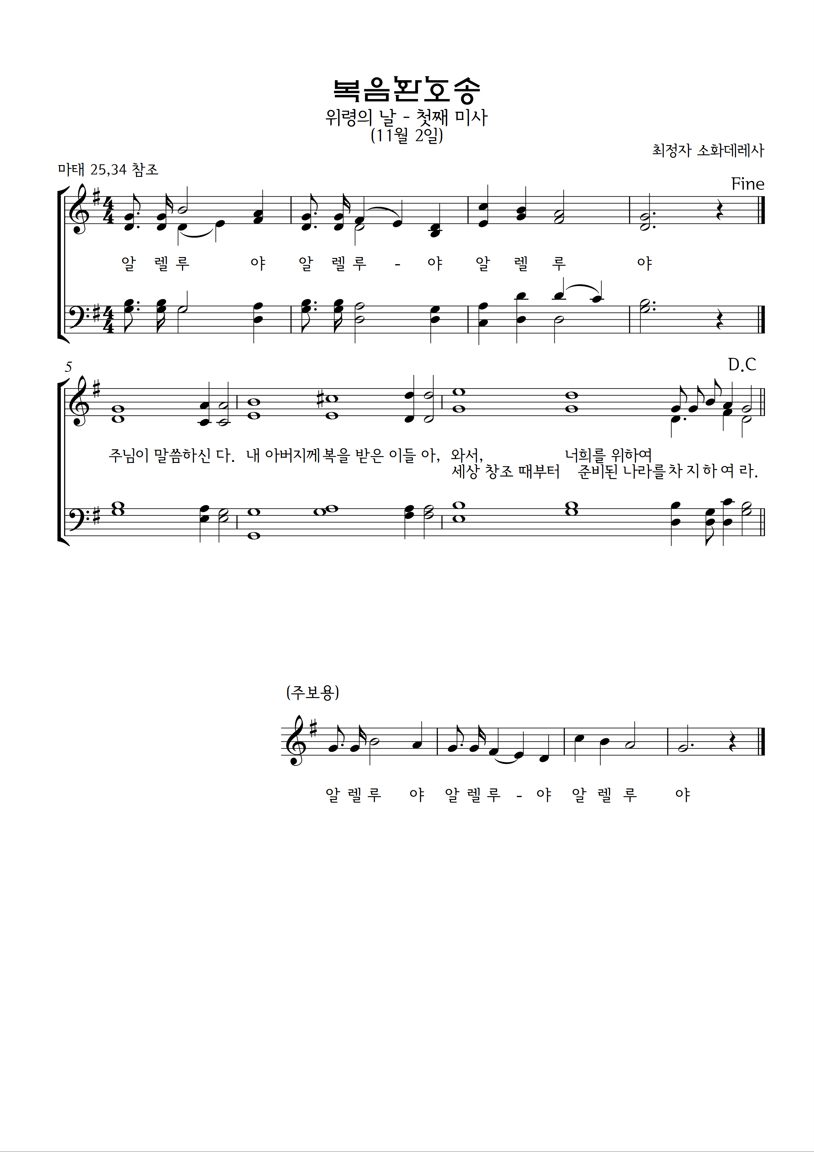 위령의 날-첫째, 둘째, 셋째 미사 화답송-복음환호송/최정자 |