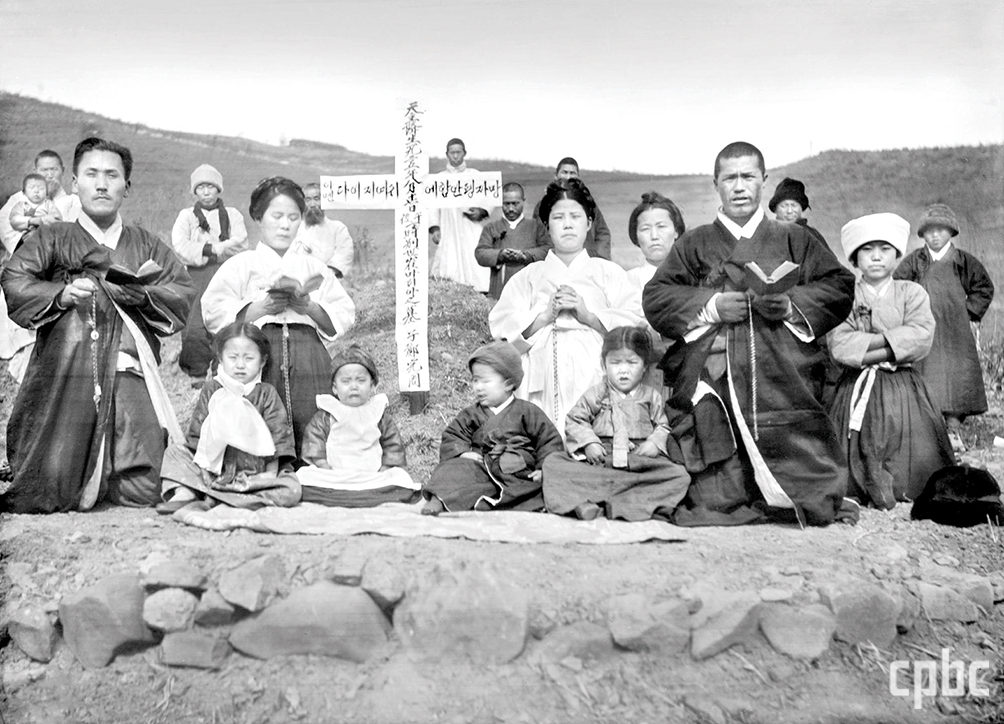 - <사진 2> 팔도구 최 마티아 가족의 위령 기도, 유리건판, 1924년 이후, 국외소재문화유산재단, 독일 상트 오틸리엔 수도원 아카이브 소장 한국 사진.