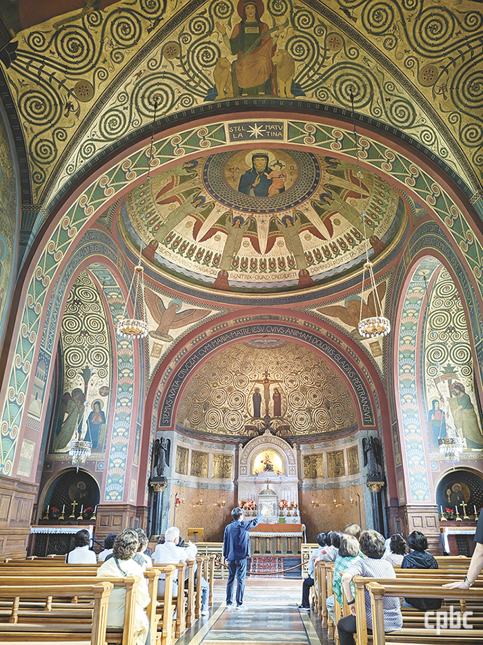 - 은총 소성당. 보이론 미술의 정신이 가장 순수하게 담긴 공간이다. 금빛과 청색이 교차하는 기하학 문양은 하늘의 예루살렘을 상징하며, 중앙의 삼위일체 원과 천사·상징 문자가 질서정연하게 배치되어 있다. 단순한 선과 상징적 비례가 신비의 깊이를 드러낸다.