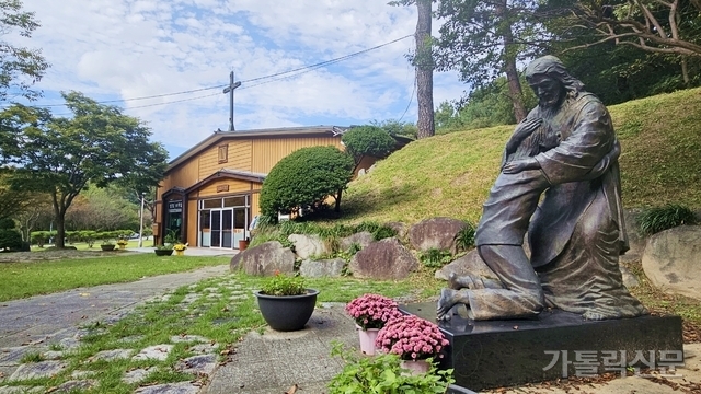 - 어농성지의 나지막한 황토색 성당 앞에는 돌아온 탕자로 보이는 동상이 부친을 부둥켜안고 있다. 박효주 기자
