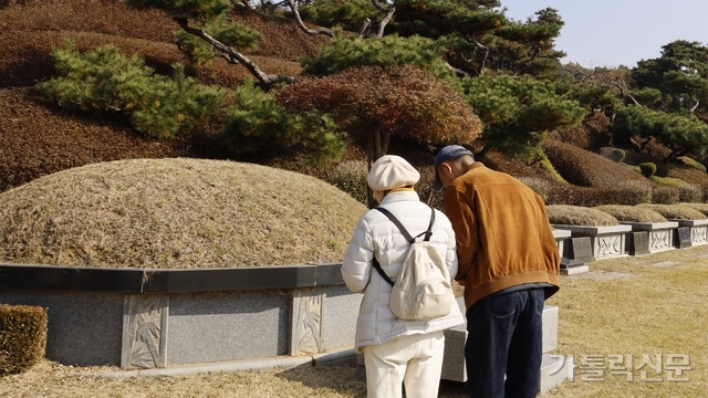 - 죽산순교성지 성직자 묘지 앞에서 순례객이 기도하고 있다. 민경화 기자