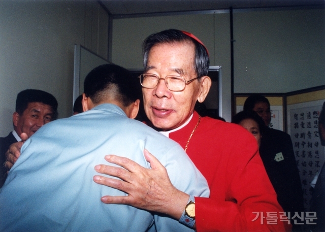 - 김수환 추기경은 사형제도에 반대하고 사형수들을 돌보면서도, 피해자 유족들에 대한 관심도 놓지 않았다. 사진은 2001년 10월 서울구치소를 방문해 사형수를 안아주고 있는 김수환 추기경. 가톨릭신문 자료사진사형 집행 중단 30년…"흉악 범죄는 늘어났을까"