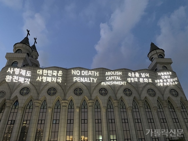 - 주교회의 정의평화위원회 사형제도폐지소위원회는 매년 11월 30일 세계 사형반대의 날에 맞춰 ‘사형제도폐지 종교·인권·시민단체 연석회의’와 함께 조명 퍼포먼스를 선보이고 있다. 사진은 2024년 11월 30일 수원교구 정자동주교좌성당에서 선보인 조명 퍼포먼스. 가톨릭신문 자료사진교회는 ‘사람을 죽이지 말라’는 하느님의 계명을 토대로 사형제도에 반대를 표하고 있다.