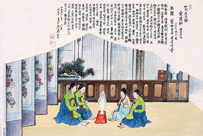 - 궁녀들과 묵주신공을 바치고 있는 김연이 율리아를 그린 그림.(탁희성 화백, 절두산 순교성지 제공)신유박해 당시 이른바 사학매파(邪學媒婆)로 활동이 두드러졌던 사람은 간지대 정복혜와 율리아나 김연이, 그리고 레지나 복점 세 사람입니다. 앞의 둘은 순교했고, 사노비였던 복점은 배교해서 유배 갔지요.