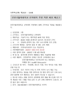 인천가톨릭대학교 신학대학 주방 직원 채용 재공고