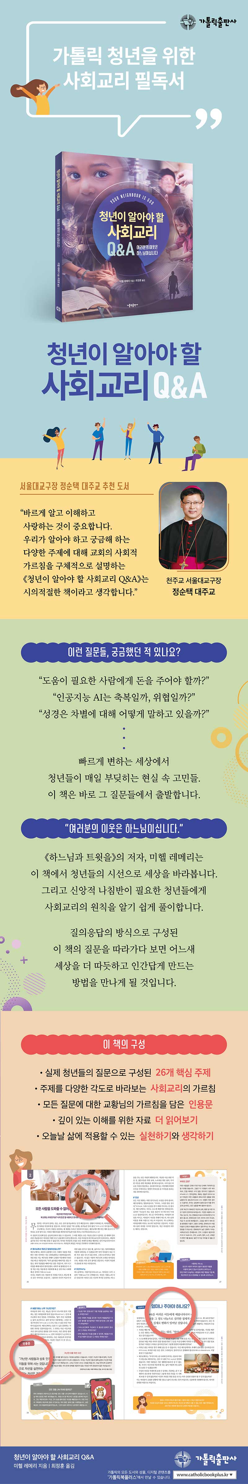 “바르게 알고 이해하고 사랑하는 것이 중요합니다. 우리가 알아야 하고 궁금해하는 다양한 주제에 대해 교회의 사회적 가르침을 구체적으로 설명하는 시의적절한 책이라고 생각합니다.” ― 정순택 대주교의 ‘추천사’ 중에서
