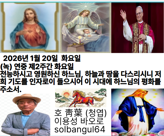 2026년 1월 20일 화요일 (녹) 연중 제2주간 화요일 하느님, 온 세상이 당신 앞에 엎드려 당신을 노래하게 하소서. 지극히 높으신 분, 당신 이름을 노래하게 하소서 오늘 전례 [홍] 성 파비아노 교황 순교자 또는[홍] 성 세바스티아노 순교자