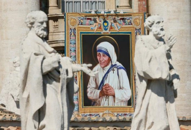 "프란치스코 교황은 9월의 첫번째 주일에 성 베드로 광장에서 칼쿠타의 마더 테레사의 성인식을 거행하였다. 교황은 자신의 가난과 고통에 눈물까지 말라 어둠 속에 있는 이들에게 빛을 주시기를 청했다.