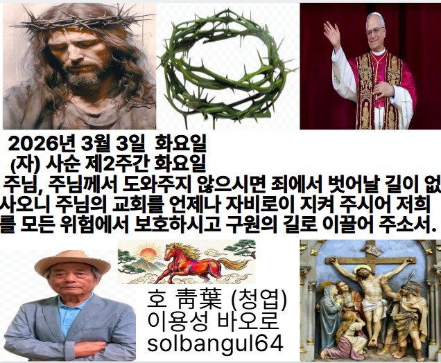 2026년 3월 3일 화요일 (자) 사순 제2주간 화요일 죽음의 잠에 빠지지 않게 제 눈을 비추소서. 제 원수가 “내가 이겼다. ” 하지 못하게 하소서.