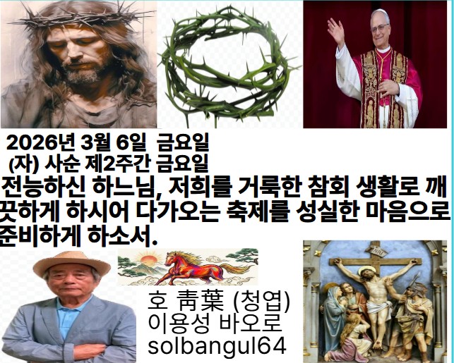 2026년 3월 6일 금요일 (자) 사순 제2주간 금요일 주님, 제가 당신께 피신하오니, 다시는 수치를 당하지 않게 하소서. 숨겨진 그물에서 저를 빼내소서. 당신은 저의 피신처이시옵니다.
