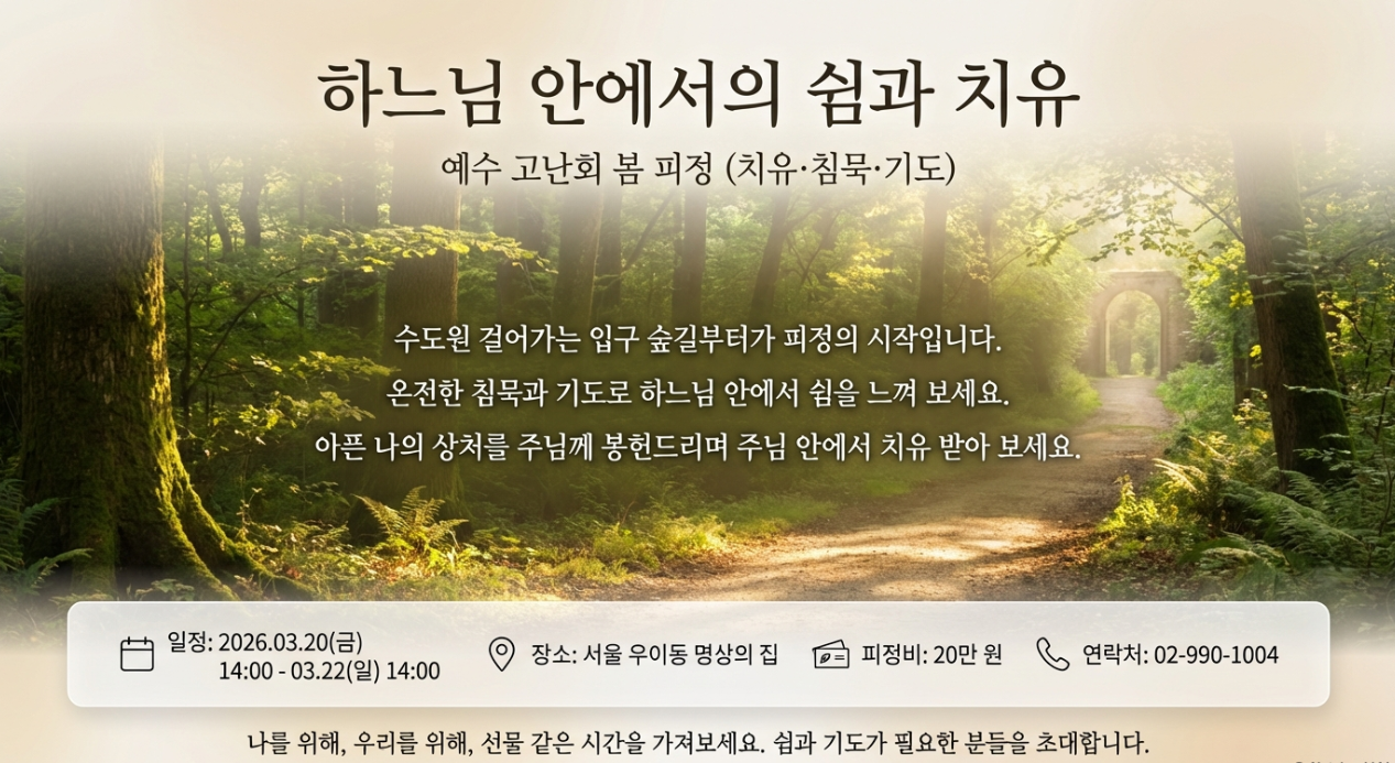 【치유/침묵/기도 피정】3월20일 - 22일 초대합니다