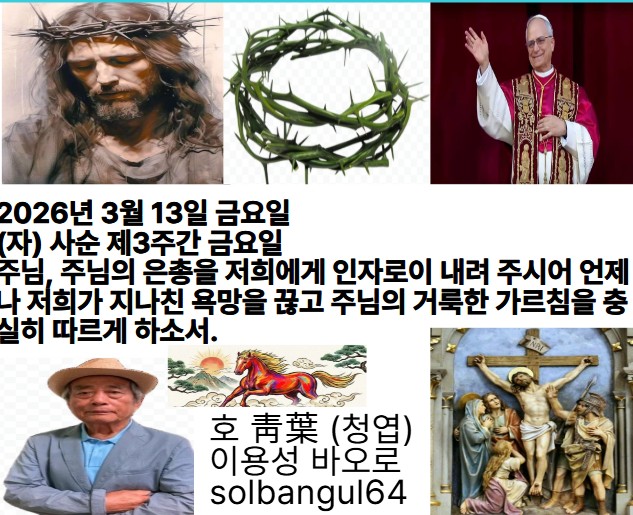 2026년 3월 13일 금요일 (자) 사순 제3주간 금요일 주님, 신들 가운데 당신 같은 이 없나이다. 당신은 위대하시며 기적을 일으키시는 분, 당신 홀로 하느님이시옵니다.