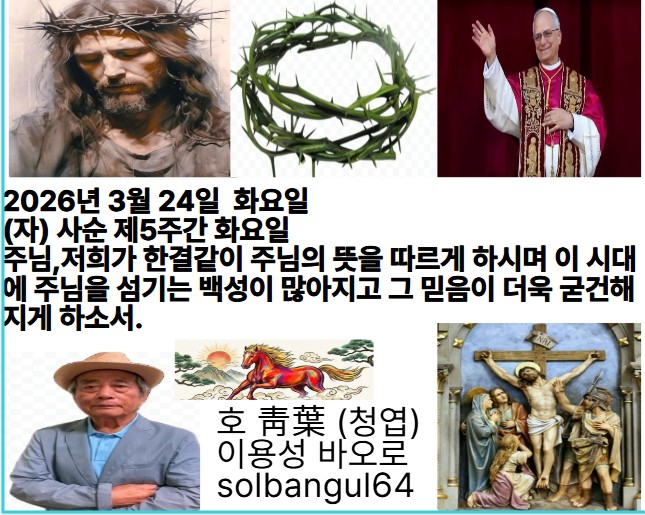 2026년 3월 24일 화요일 (자) 사순 제5주간 화요일 주님께 바라라. 힘내어 마음을 굳게 가져라. 주님께 바라라.
