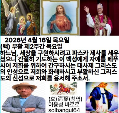 2026년 4월 16일 목요일 (백) 부활 제2주간 목요일 하느님, 당신 백성에 앞장서 나아가실 제, 그들 가운데 사시며 길을 열어주실 제, 땅은 흔들리고 하늘은 물이 되어 쏟아졌나이다 알렐루야.