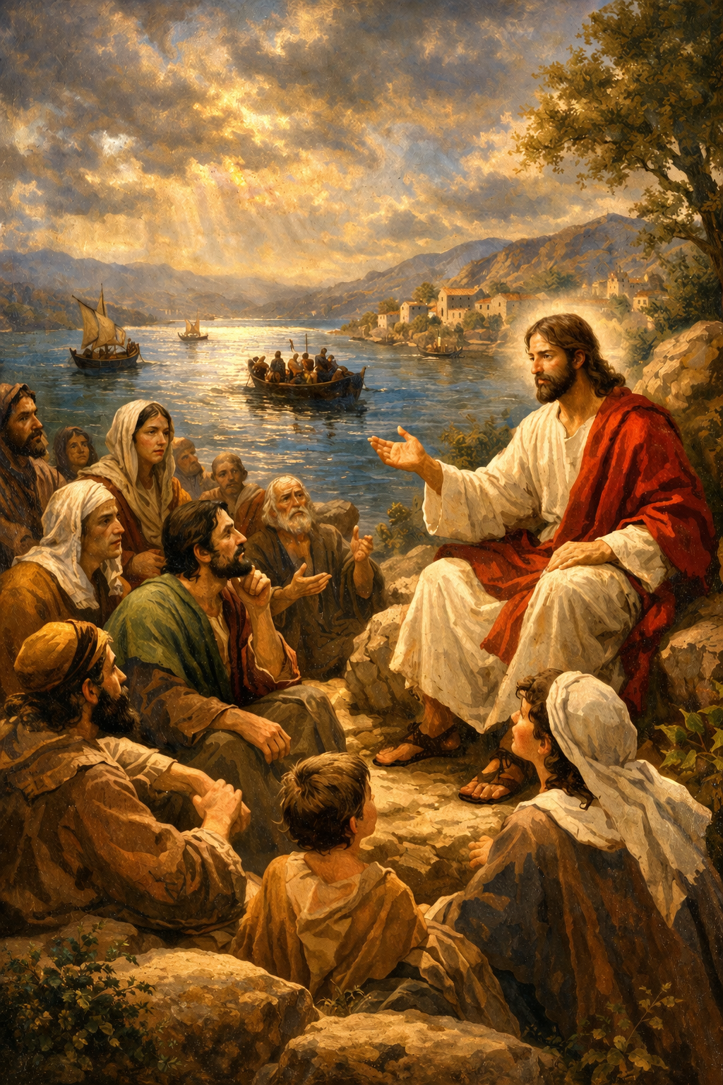 까지 배에 타고 예수님을 쫓아올