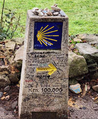 사리아에서 하룻밤을 자고 이튿날 어둠침침할 때 길을 나섰다. 이곳에서 알게 된 한국에서 온 부녀와 같이 숙소를 나섰다가 장갑을 산다고 해서 둘이 먼저 걸었다. 이른 시간인데도 오픈한 바(Bar)가 많았다. 사람들이 바에 앉아 커피와 빵을 먹고 있다. 주변에 사리아라고 입체적으로 크게 쓴 흰 글씨가 있어 사진을 찍었다. 가다 보니 여러 나라 국기로 만든 장식이 눈에 띄었다. 그곳에 우리나라 태극기도 있어서 무척 반가웠다. 이것은 사리아를 특징적으로 보여주는 팻말이기도 하다. 사리아부터 갑자기 사람들이 많아진다는 걸 실감했다. 마치 단체로 소풍 가는 것처럼 노란 화살표를 보지 않아도 순례자들만 따라가도 된다. 순례자 무리가 떼를 지어 씩씩하게 다음 목적지 방향으로 걸어갔다.