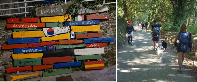 특히 길가에 순례자를 위한 숙소(알베르게)와 카페, 식당이 많아 거리에 활기가 넘친다. 먹거리로는 문어요리(Polbo a feira), 갈리시아식 스프(Caldo gallego), 저렴하게 제공되는 순례자 메뉴(Menu del peregrino) 등이 있다. 우리 부부는 사리아에 도착해서 알베르게를 쉽게 찾았다. 깔끔하게 잘 관리한 숙소인데 예상보다 투숙객이 많지 않아 의외였다. 사리아부터 출발하는 사람이 많다고 들어서 걱정했는데 다행이다.