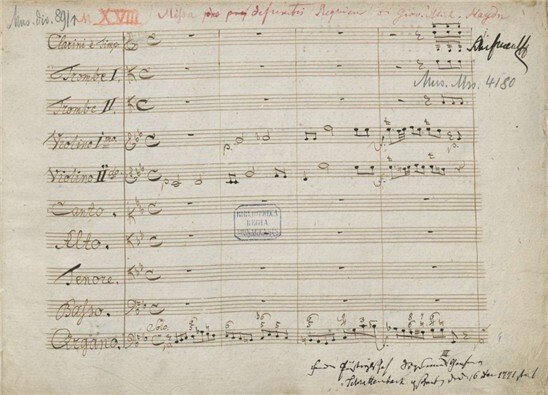 - 요한 미하엘 하이든의 <레퀴엠> 악보, MH 155(1771) 필사본. 출처 위키미디어