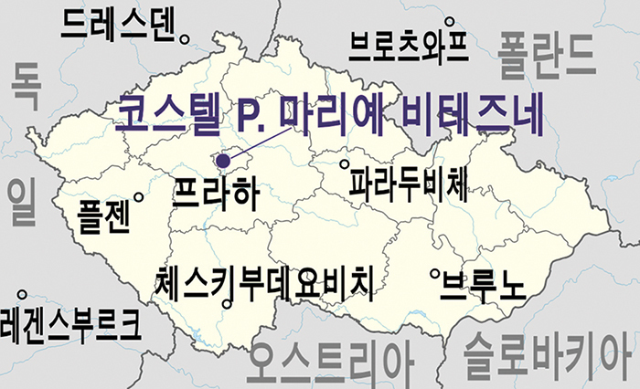 프라하 중심부의 순례지, 작은 성당과 대사관·카페가 모여 있는 프라하성 아래 구시가지인 말라 스트라나 지구에 자리한 승리의 성모 성당으로 ‘프라하 아기 예수님’으로 유명한 순례지이지요. 맨발의 가르멜회 수도자와 아기 예수의 가르멜회 수녀들이 함께 매년 수십만 명의 순례자를 맞이하고 있습니다.