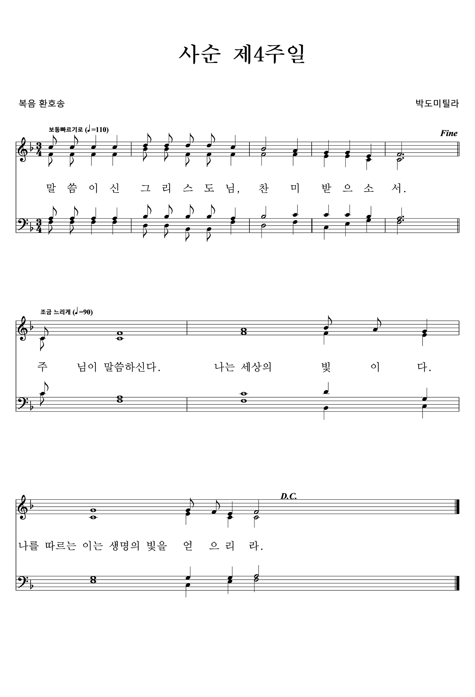 사순 제4주일 화답송. 복음환호송 - 박도미틸라 |
