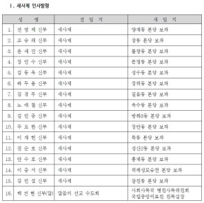 † 찬미예수님 천주교 서울대교구에서는 02월 06일 16분의 새사제에 대한 인사발령을 단행하였습니다. 발표일자 : 2026. 02. 06(금) 부임일자 : 2026. 02. 19(목) PDF파일을 읽을 수 없을 경우 PDF뷰어 설치 후, 조회 가능합니다.