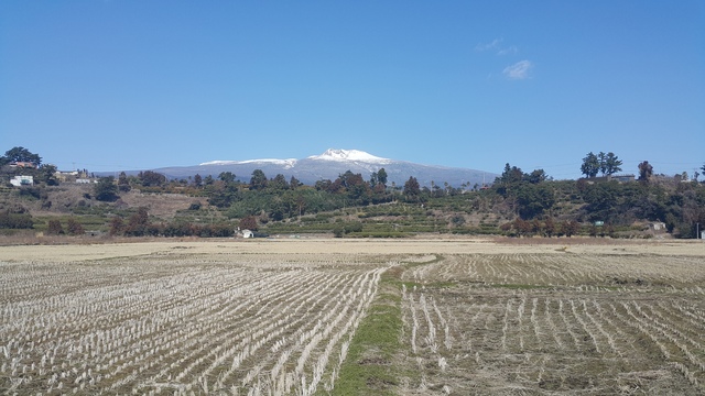 - 하논분화구에서 너머로 멀리 한라산 정상이 눈에 들어온다. 하논은 한라산의 남쪽, 산남지역의 신앙이 시작된 상징적인 장소다. 오충윤 씨 제공