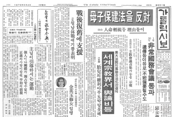 - [한국] 가톨릭신문으로 보는 한국교회 100년 (24) 모자보건법 제정
