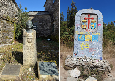 - 엘리아스 발리냐 신부님(좌) 갈리시아 지역 표지석(우)그런데 갑자기 남편이 소리 지르며 넘어졌다. 정말 깜짝 놀랐다. 휴대폰으로 남은 거리를 검색하다가 앞에 턱을 못 보고 고꾸라졌다. 8kg의 배낭을 메고 순식간에 넘어진 것이다. 다행히 다친 곳은 없었다. 하마터면 병원으로 실려 가 순례를 중도에 포기할 상황이 생길뻔했다. 사고는 순간이라더니 정말 아찔했다.