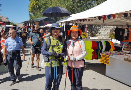 오 세브레이로 정상에 흰 천막들이 보였다. 공립 알베르게는 하나인데 많은 사람이 모인 듯했다. 오르는 길은 가면서 계속 빙빙 돌았다. 능선 위에 능선이 있고, 고개 너머에 또 고개가 나왔다. 입에 단내가 날 즈음에 막판 힘든 길을 걷고 쭉 이어지는 길도 걷다가 차츰 정상으로 올라갔다. 오 세브레이로는 성체 성혈의 기적이 일어난 곳으로 알려져서 그런지 높은 고지대이지만 사람들이 많았다. 우리는 오름을 올라 올 때 상당히 숨이 차고 힘들었는데 어디서 이렇게 많은 사람이 모였는지 신기하다. 사진을 찍고 500여 개의 침대가 있는 국립 알베르게로 가서 순례자 여권에 세요도 찍었다. 오 세브레이로는 1300m 고지대에 있다. 우리가 갔을 때는 시골 장터에 간 것처럼 물건을 파는 분들과 사러 온 사람도 많았다.